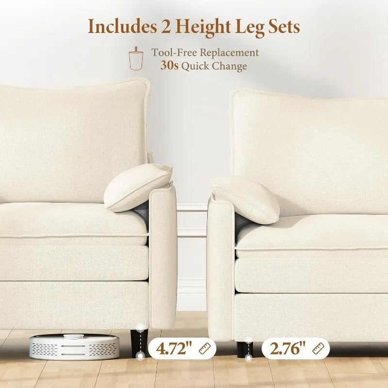 142" U Shaped Sectional Couch,with 2 Ottoman Deep Seat Chenille Modern Cloud Sofa, for Living Room, Bedroom and Apartment, Beige