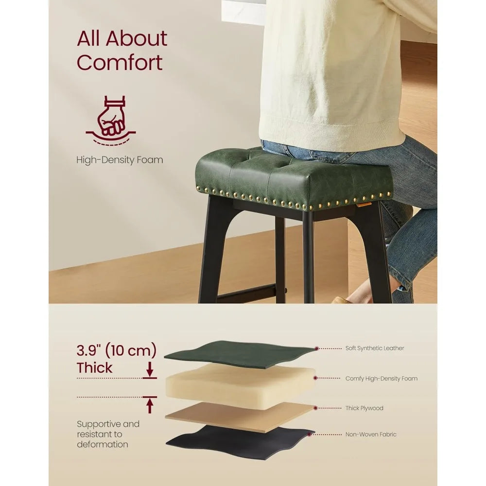 2-piece bar stool set, saddle high bar stool, 26 inch backless wooden leg kitchen stool, thickened PU leather