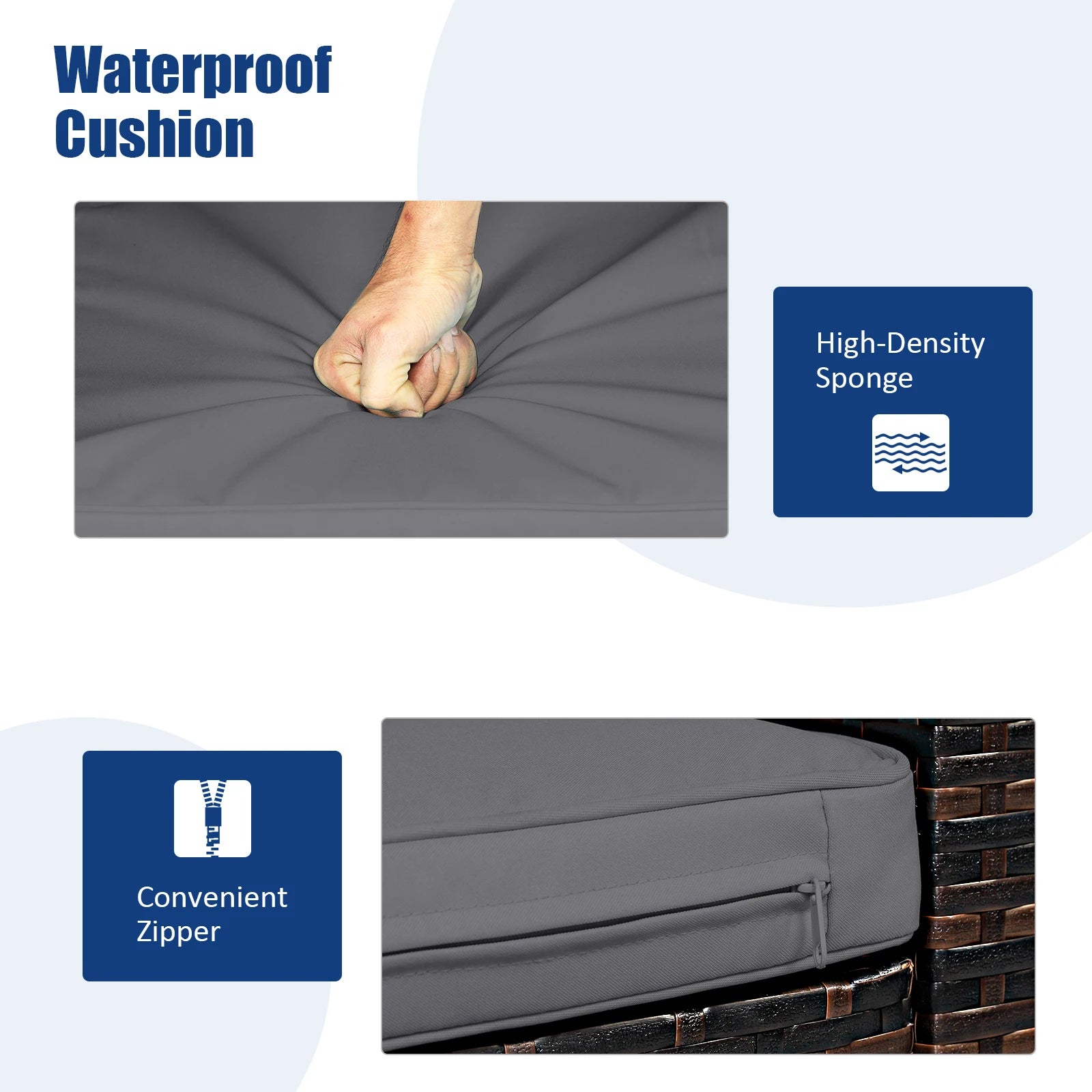 3PCS Patio Rattan Wicker Furniture Cushion Sofa Coffee Table Gray