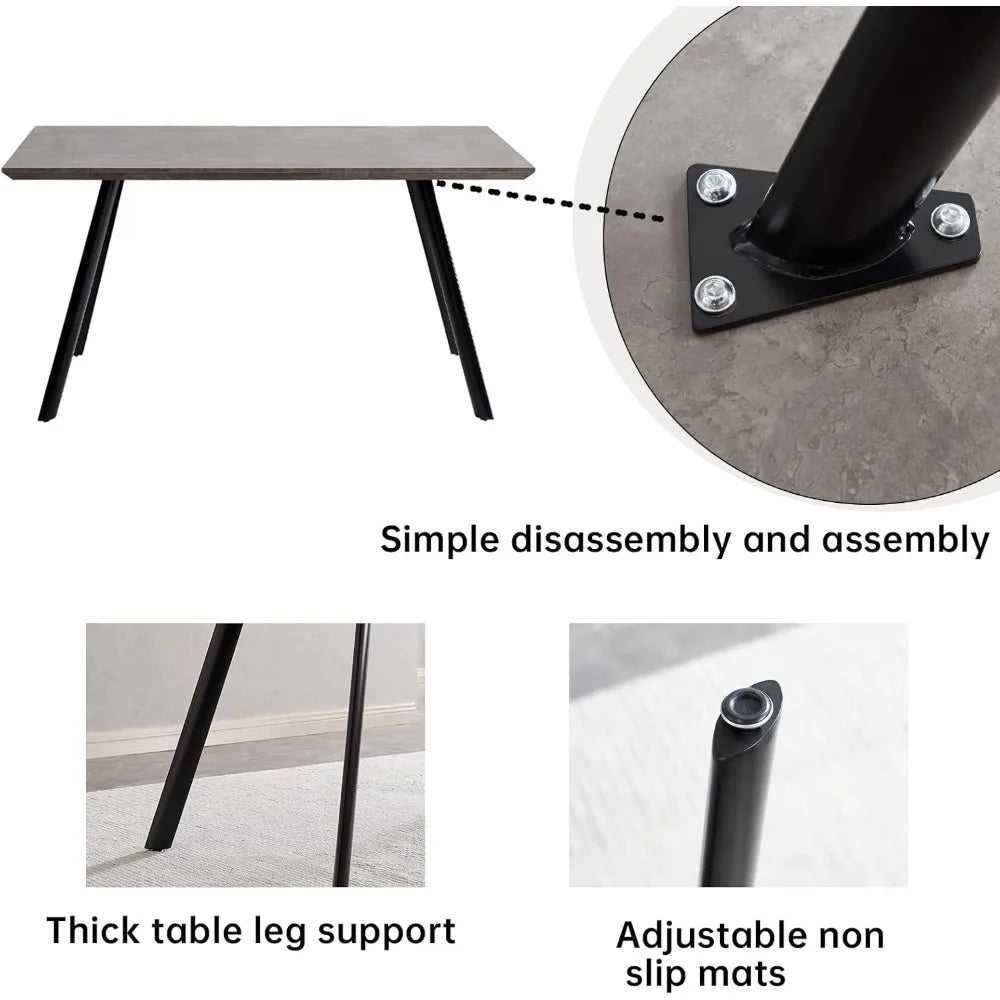 46.5" Modern 5-Piece Kitchen Table Set Rectangular Wood Dining Table with 4 Upholstered Leather Chairs