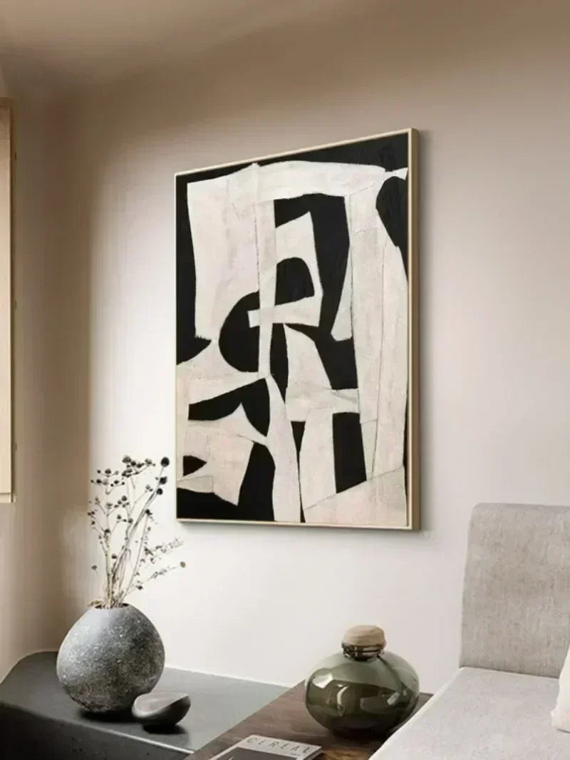 Create a serene atmosphere in your space with this large canvas featuring abstract beige and black tones.