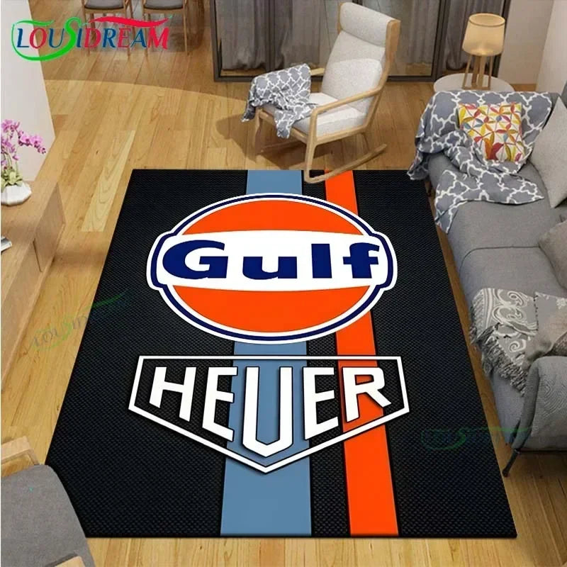 Rev up your space with this Gulf Racing digital print area rug featuring the iconic racing stripes and colors. Perfect for motorsport enthusiasts, this bold design brings racing heritage and vibrant energy to any room.