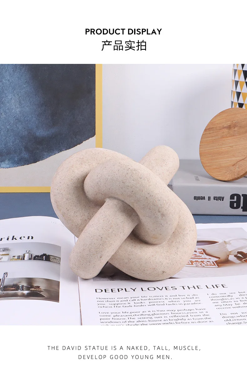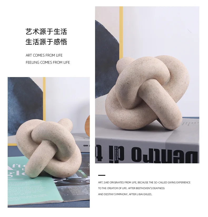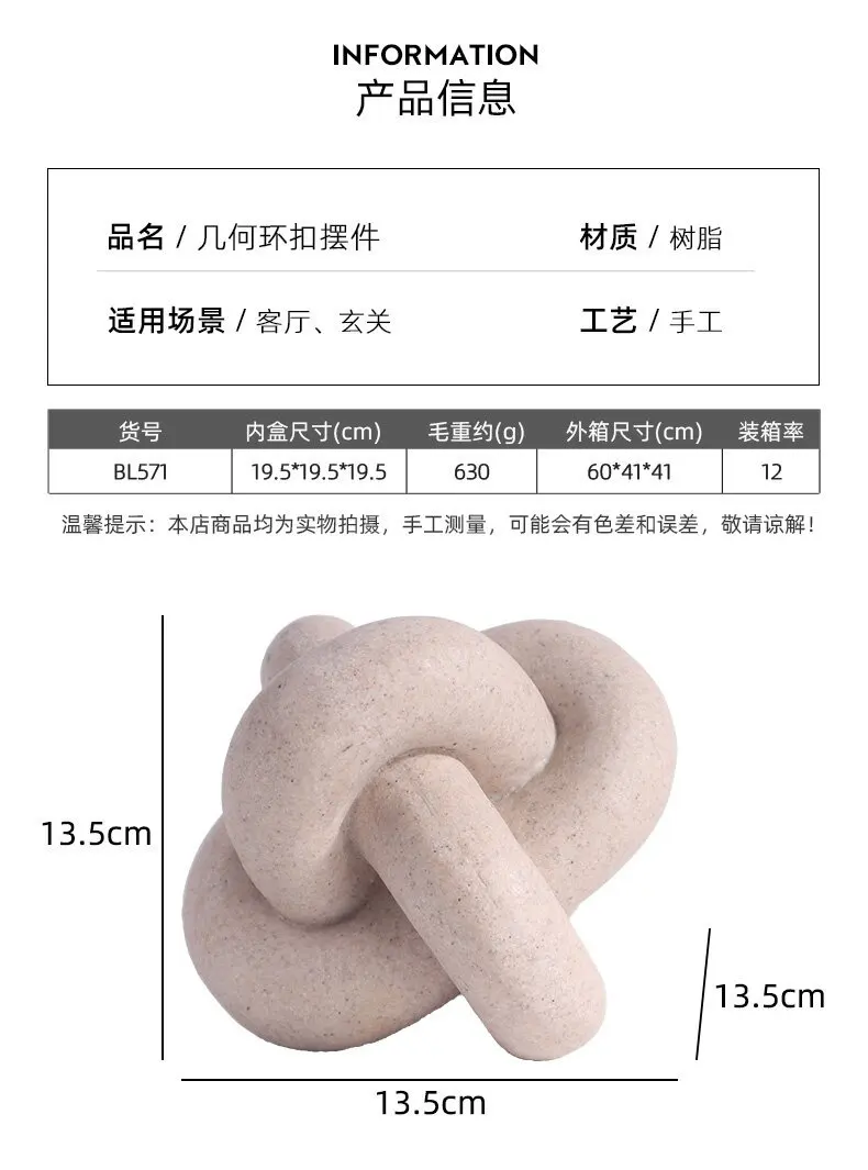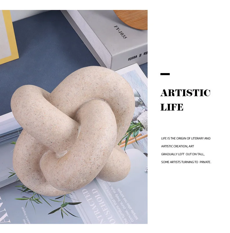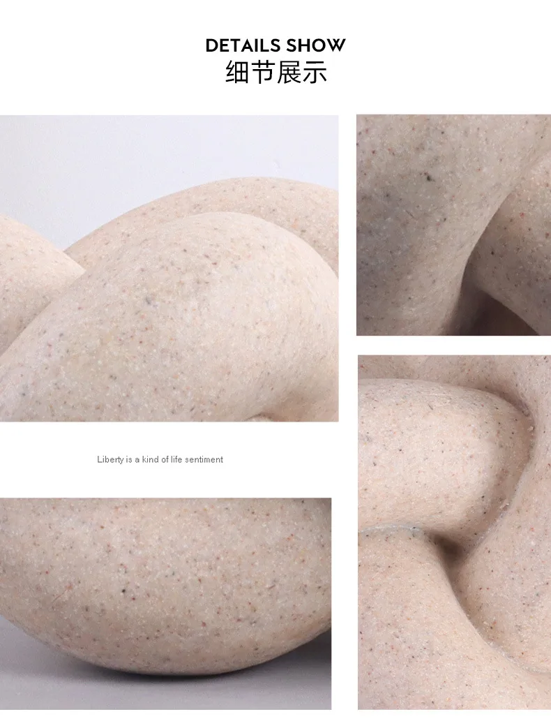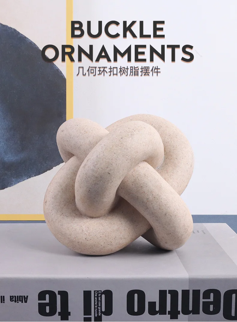 Geometric Ring Buckle Ornament Living Room Study Sandstone Resin Art 3-chain Pine Knot Chain Decor Bohemian Table Fireplace