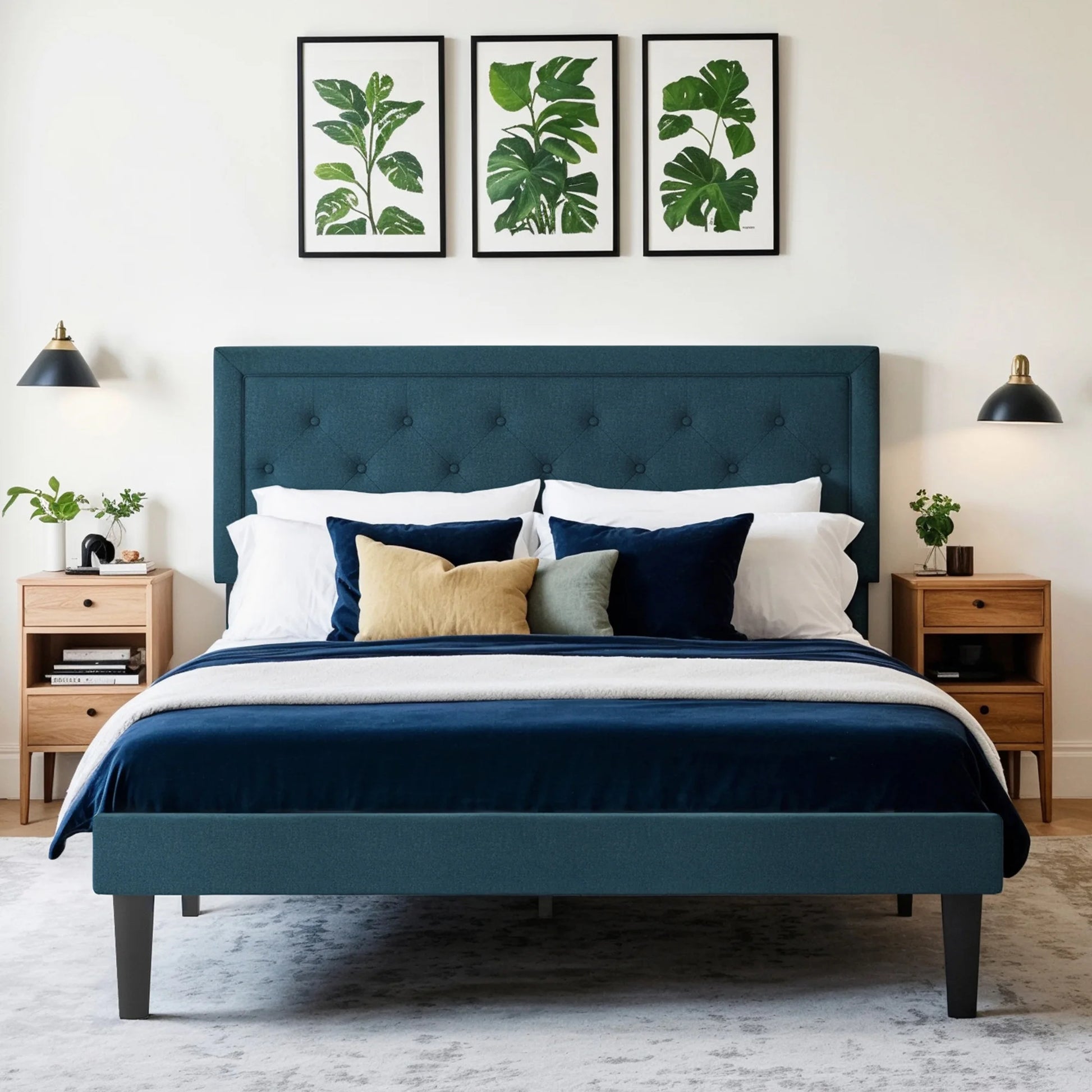 - Button tufted headboard