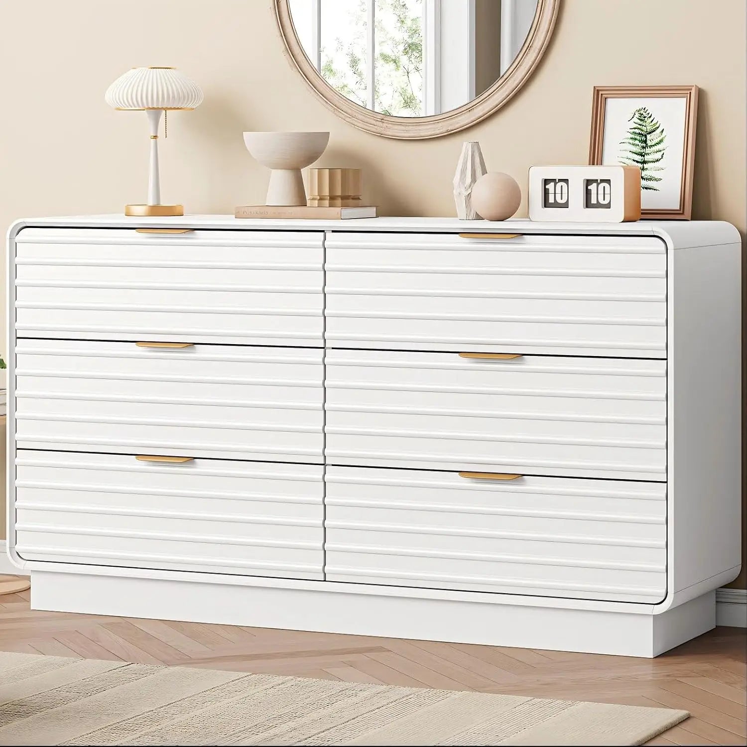 IRONCK Fluted 6 Drawer Dresser for Bedroom,54" Wide Modern Dresser Drawers, Wooden White Dressers with Metal Handle for Bedroom