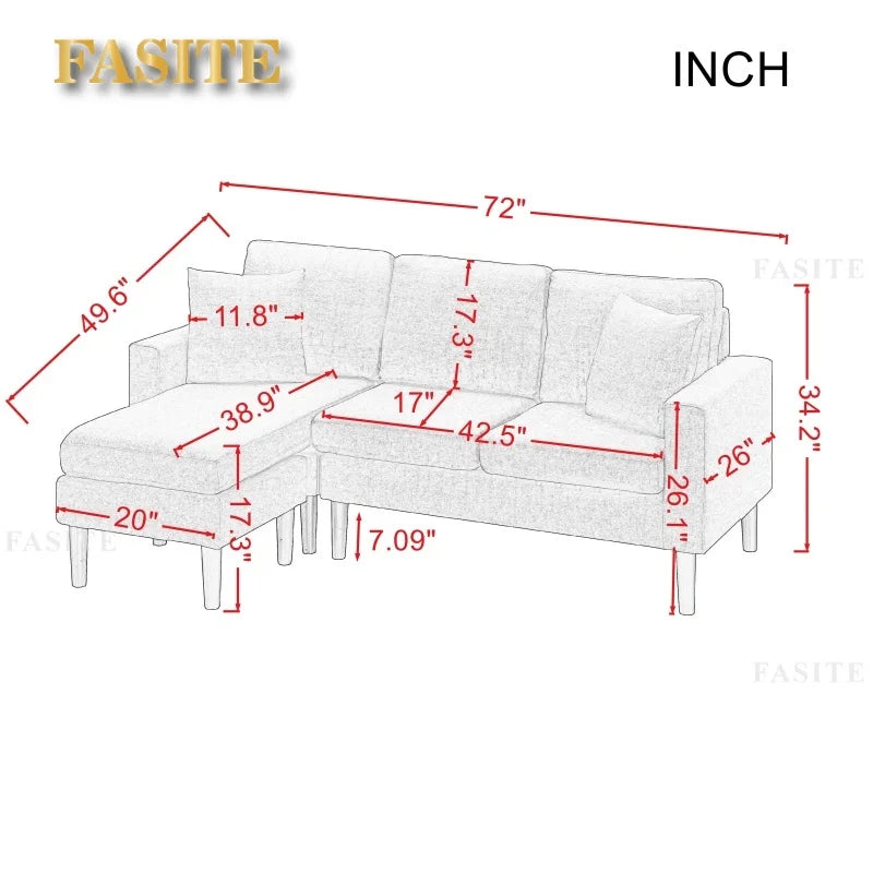 Living Room Sofa, 72" Sectional Sofa With 2 Pillows In Navy Blue Fabric On Left Hand Side Interior Decoration