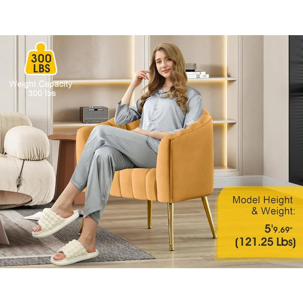 Oversized Pumpkin Couch Accent Chair, Modern Comfy Velvet Upholstered Barrel Chairs, Luxury Single Sofa Armchair for Living Room