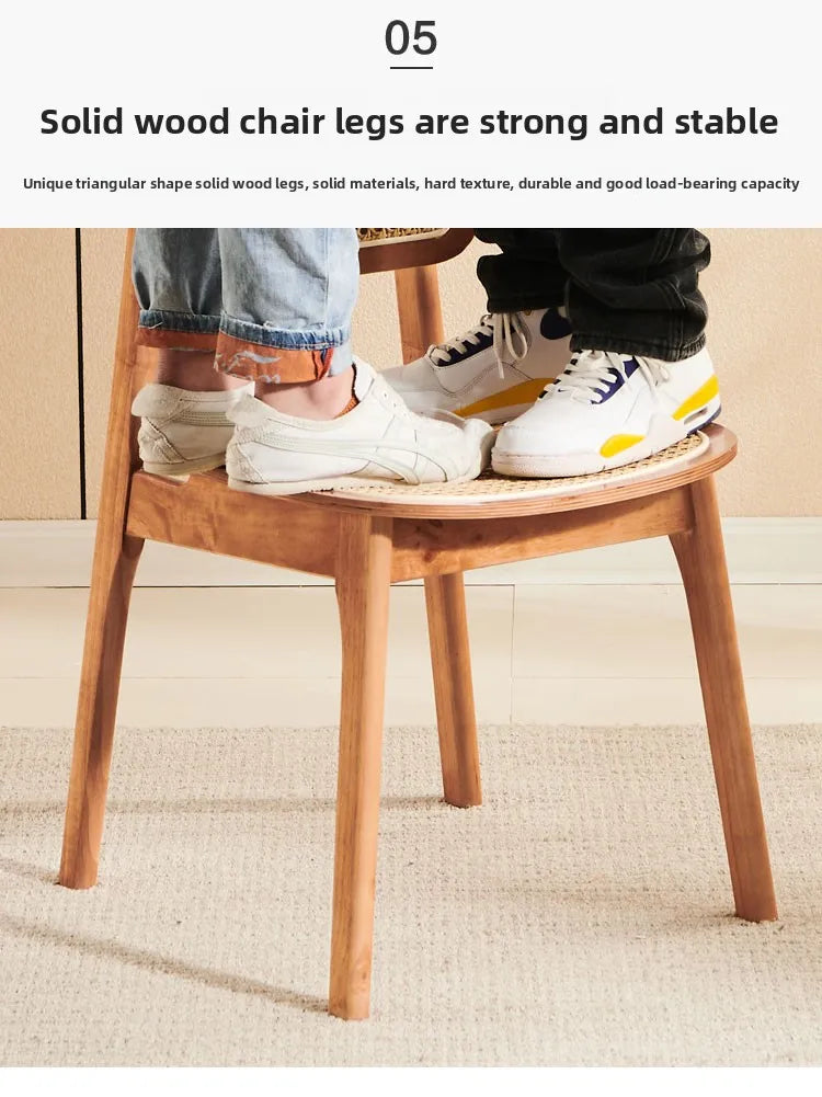 Scandinavian Dining Chair Natural Rattan & Wood Cafe Seat Minimalist Backrest Chair for Homestay Nordic Woven Home Furniture