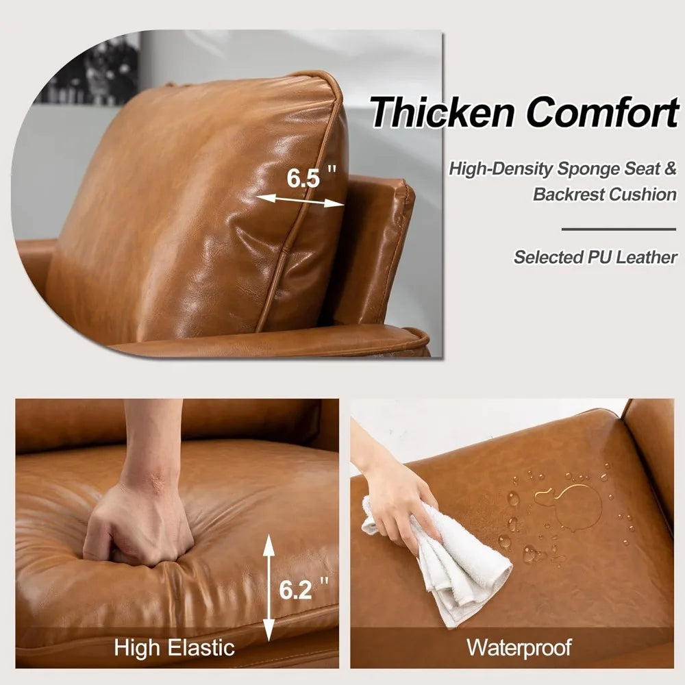 Set of 2 Modern Leather Chairs: Oversized Armchairs for Living Room - Cozy Mid-Century Accent Seating