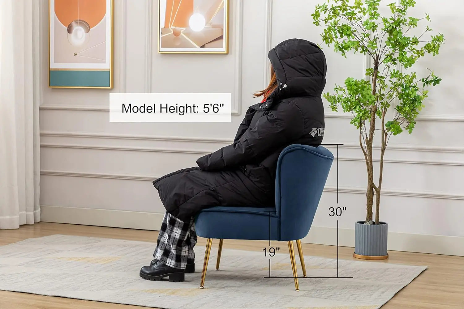 Set of 2 Velvet Wingback Accent Chairs, Navy Blue, Modern Slipper Sofa with Legs for Living Room Bedroom