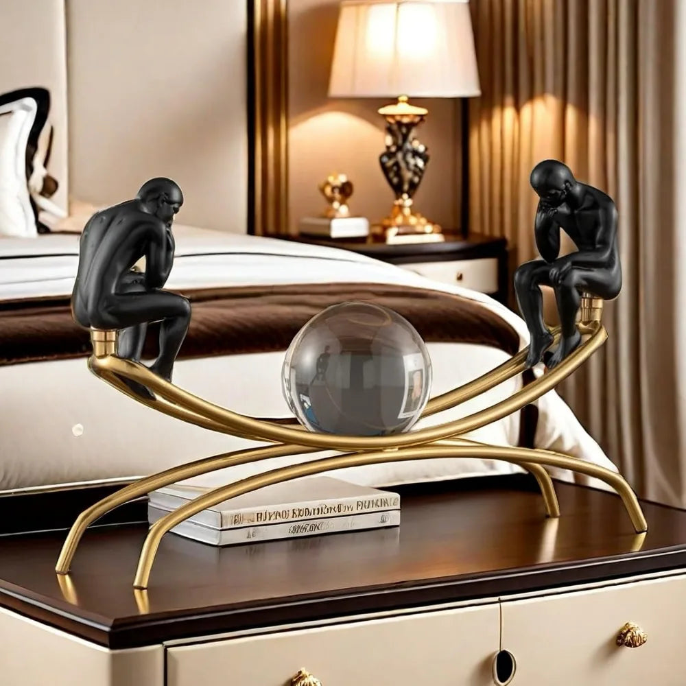 The Thinker Statue with Crystal Ball - Figurine Sculpture | Home Office Decor