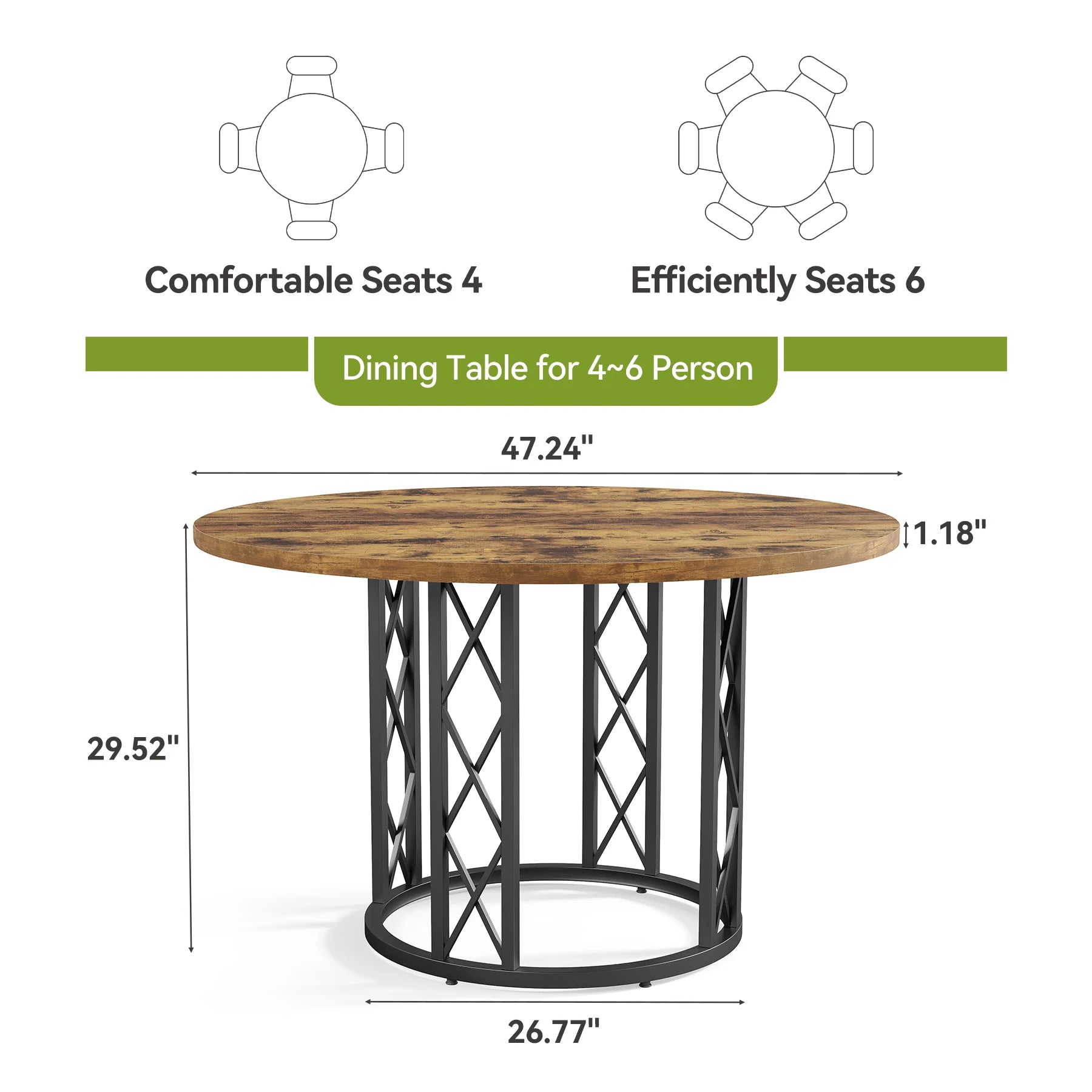 Tribesigns Round Dining Table for 4-6 People, 47-Inch Farmhouse Dinning Room Table Circle Kitchen Table, Industrial Dinner Table