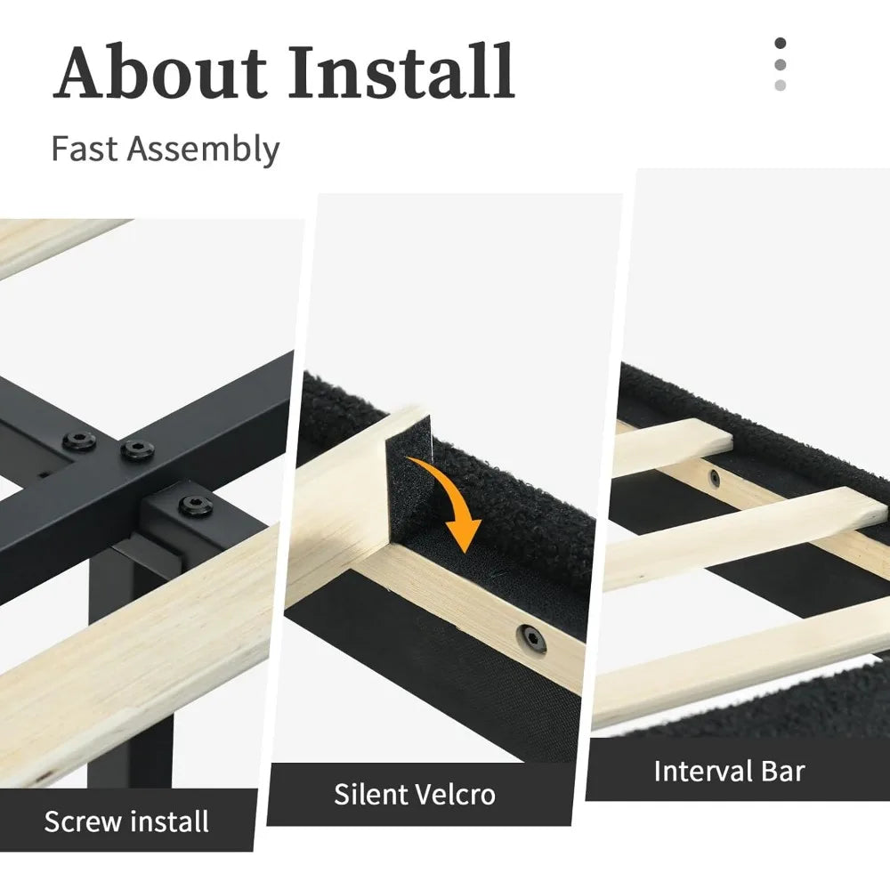 Twin Bed Frame with Upholstered Headboard and Platform Design