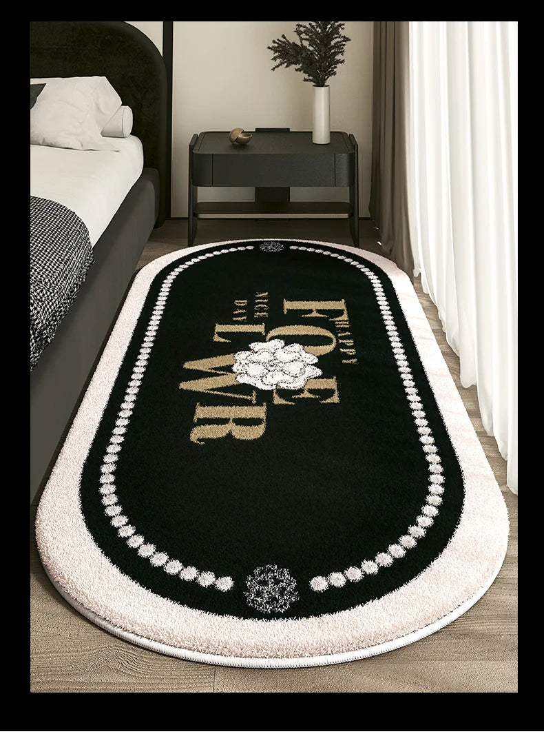 Designer-Inspired Oval Bedroom Rug - Luxury Logo Design with Lace Border