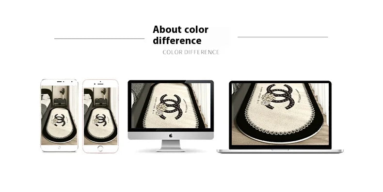 The plush, soft texture provides comfort underfoot while the eye-catching logo motif and decorative border add glamorous designer appeal.